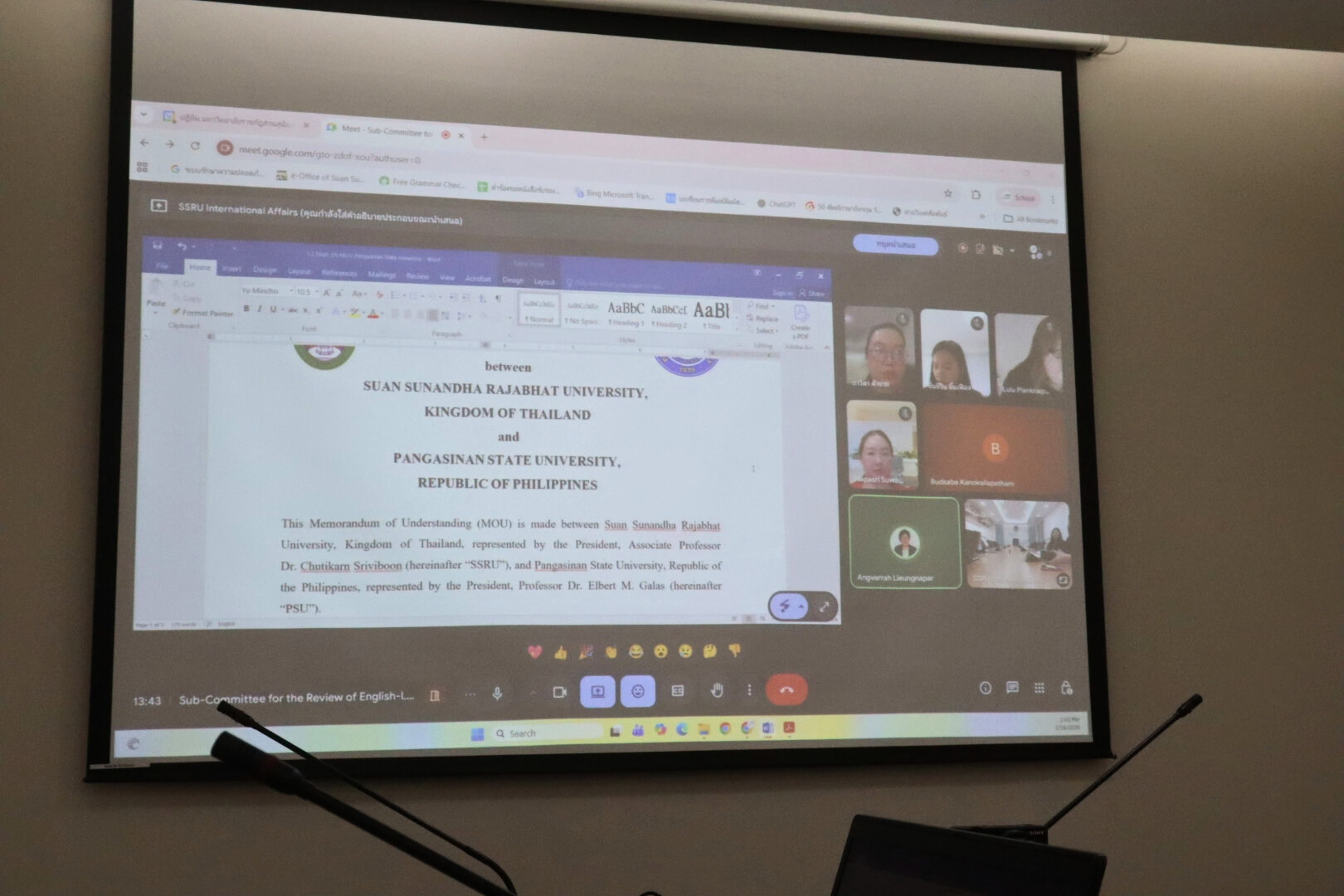 The purpose of the meeting was to review and verify the accuracy and consistency of the English versions of the Memoranda of Understanding (MOUs) against their Thai counterparts prior to submission to the Academic Council and the University Council for approval.