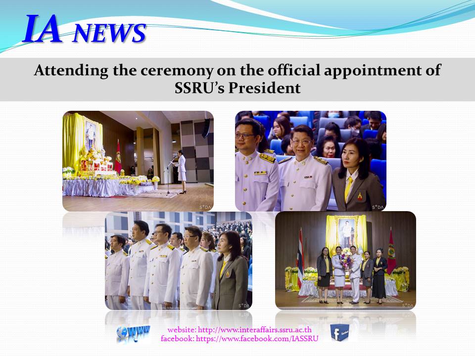 December 17, 2020, Mr. Anantachai Aeka, Acting Assistant to the President for International Affairs and staffs attended the ceremony on the official appointment of SSRU’s President, Assoc. Prof. Dr. Chutikarn Sriviboon, through the royal command. After the ceremony, they expressed their congratulations to the newly appointed President.
