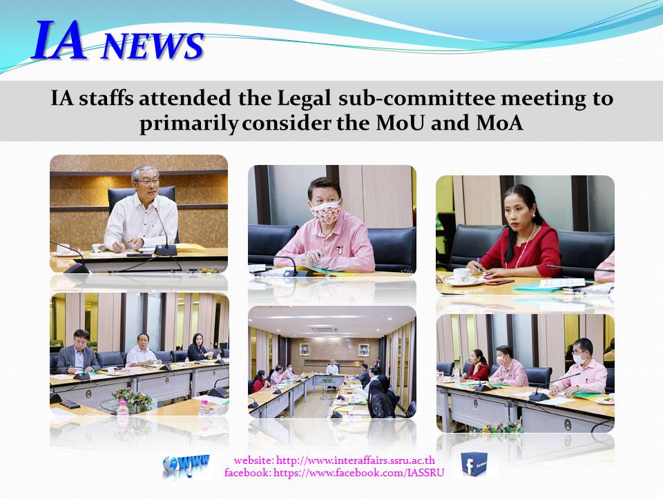 March 4, 2021 – Mr. Anantachai Aeka, Assistant to the President for International Affairs and Ms. Nutchanart Pengsuriya, Acting Head of International Affairs attended the Legal sub-committee meeting to primarily consider the MoU and MoA. The meeting was led by Assoc. Prof. Dr. Wittaya Mekhum, Vice President for Planning and Quality Assurance.