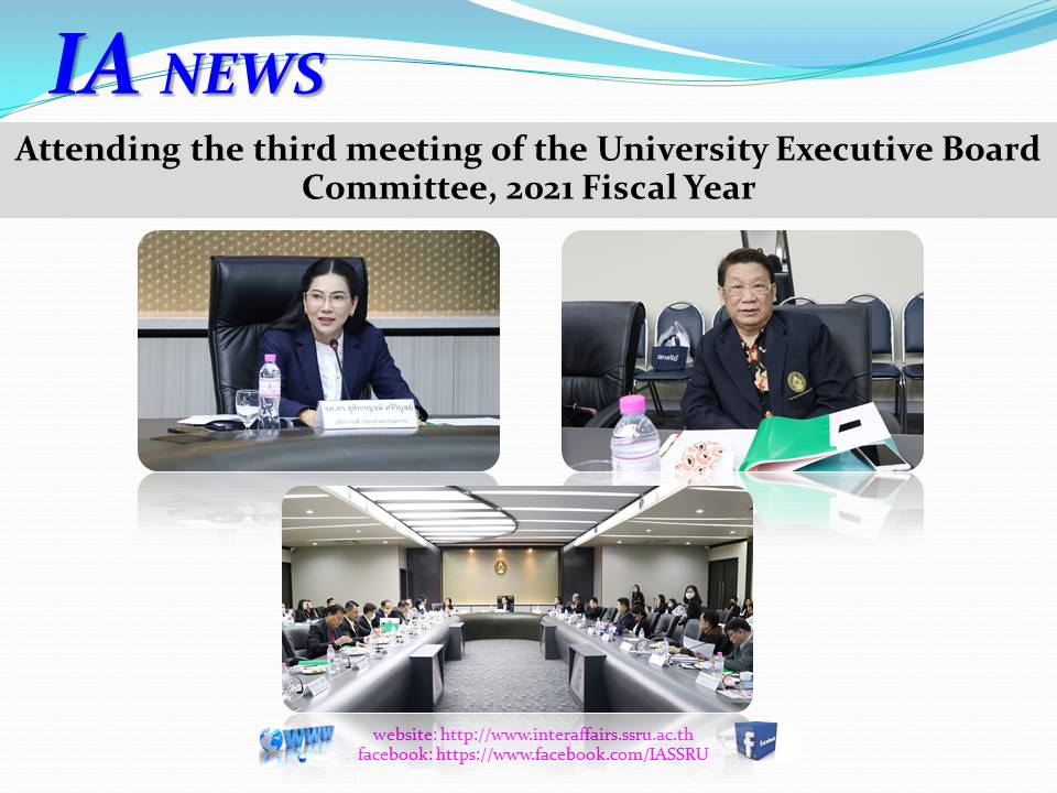 March 8, 2021, Mr. Anantachai Aeka, Assistant to the President for International Affairs attended the third 2021 annual meeting of the University Executive Board Committee, being chaired by Assoc. Prof. Dr. Chutikarn Sriviboon, the President. The venue was held at the University Council Room.