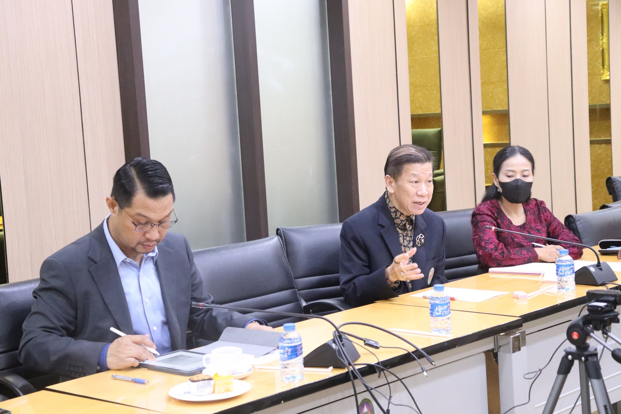 July 17, 2023 – International Affairs Department held the preparation meeting for Art of Nation Malaysia-Thailand, which will be organized on August 17, 2023, led by Asst. Prof. Anantachai Aeka, Assistant to the President for International Affairs, along with Asst. Prof. Dr. Tassanee Attharos, Dean of College of Nursing and Health, and Asst. Prof. Dr. Somsak Klaysung, Dean Faculty of Management Science, and lectures from the Faculty of Management Science and the Faculty of Fine and Applied Arts, at the Office of the President meeting room, 4th floor, Office of the President Building.