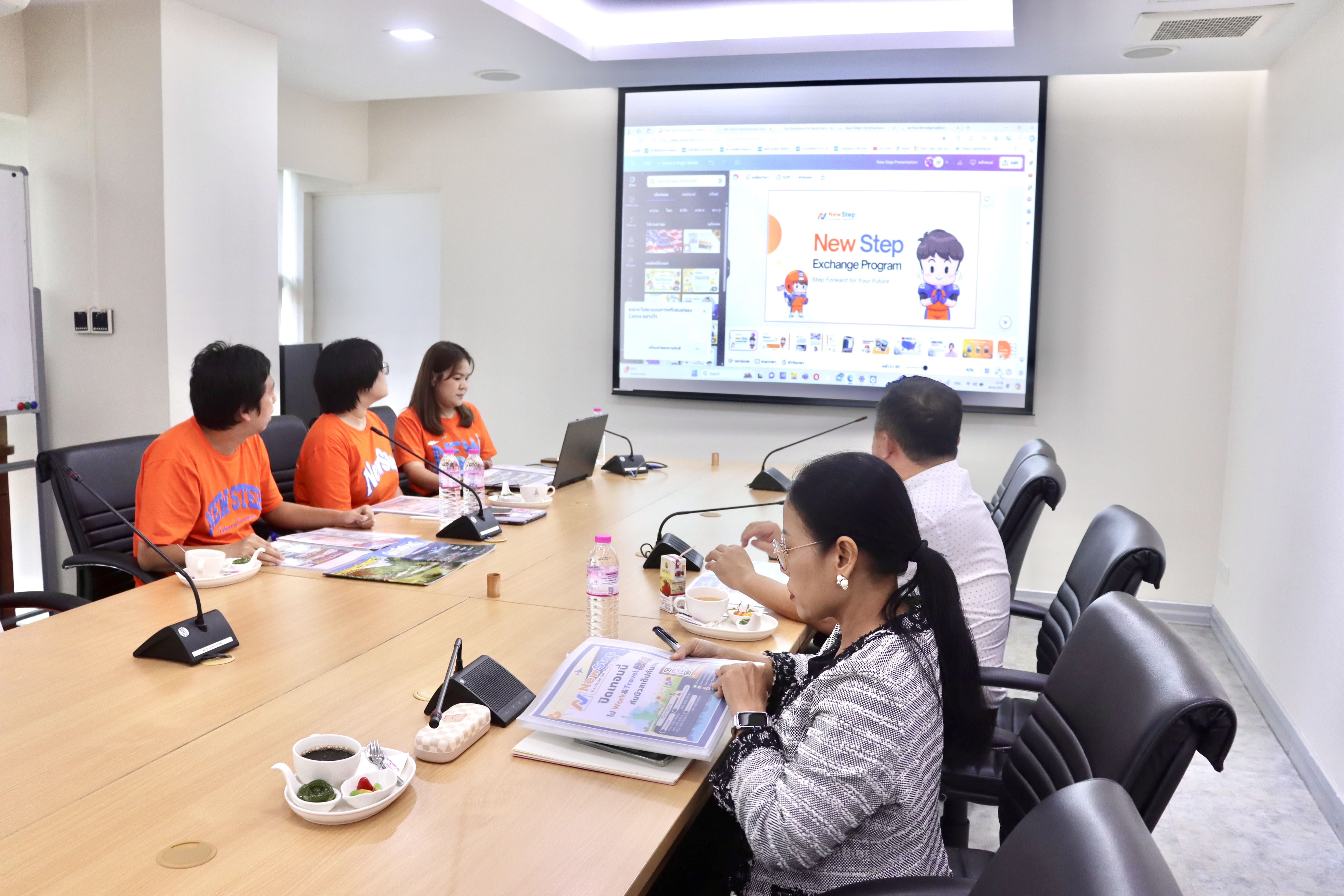 June 20, 2024 - Department of International Affairs, led by Assistant Professor Dr. Preecha Wararatchai, Assistant to the President for International Affairs along with Ms. Nutchanart Pengsuriya, Acting Head of International Affairs Department welcomed and discussed with representatives from New Step Exchange Program Co., Ltd. on the Thai-American Cultural Exchange Program (Work and Travel in USA) for students from Suan Sunandha Rajabhat University. This venue aimed to enhance students' English language skills to meet demands in the global market by working at the school break, at the Policy and Planning Division meeting room, 4th floor, Office of the President building.