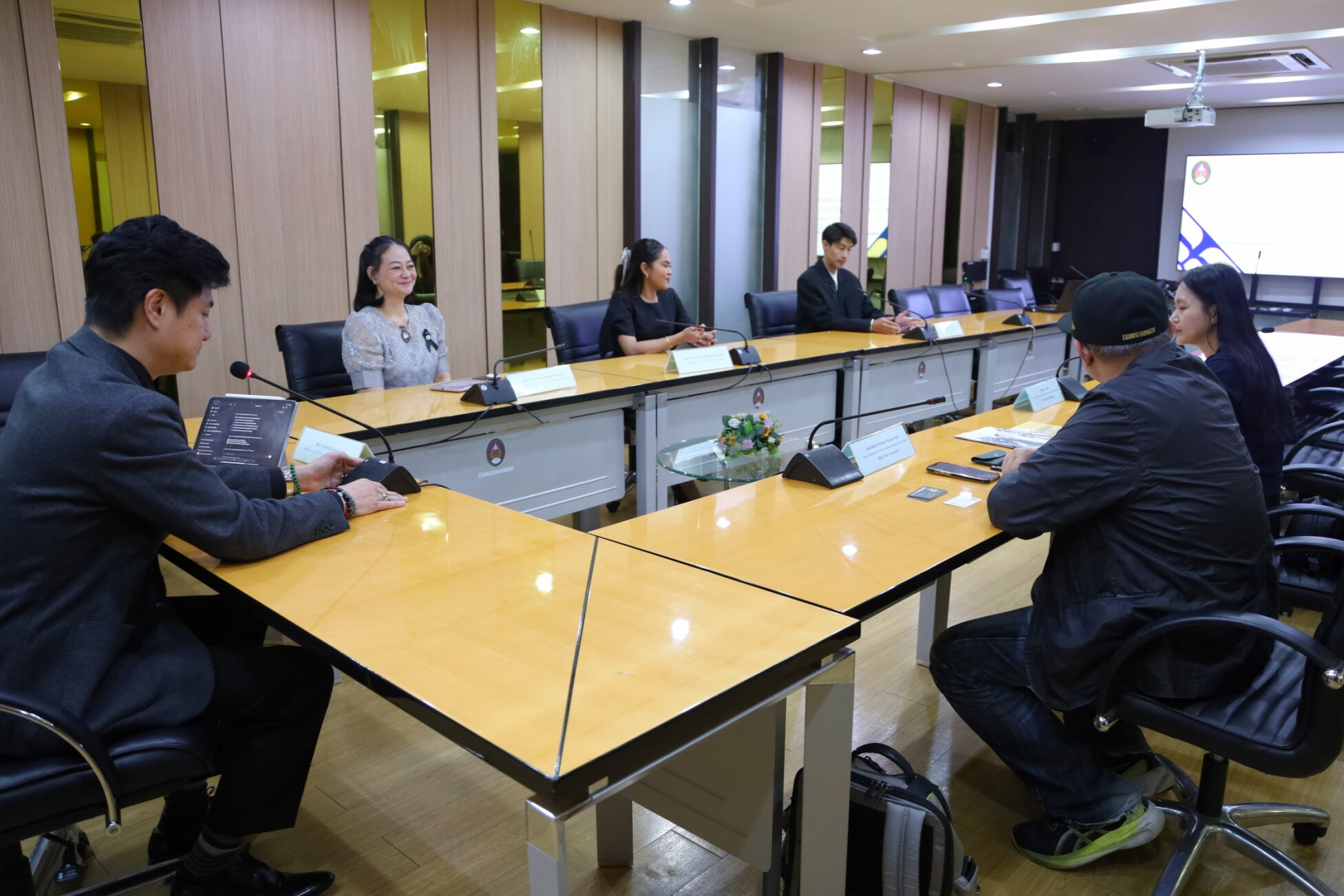 The session was led by Ajarn Tonphon Sapnirund, Assistant to the President for International Affairs, together with Asst. Prof. Dr. Kornkamol Chuchuoy, Assistant to the President for Curriculum and Instruction, Asst. Prof. Dr. Thuwathida Suwannarat, Assistant to the Vice President for Student Affairs and Ajarn Mongkol Ingkutanon, Faculty of Fine and Applied Arts.