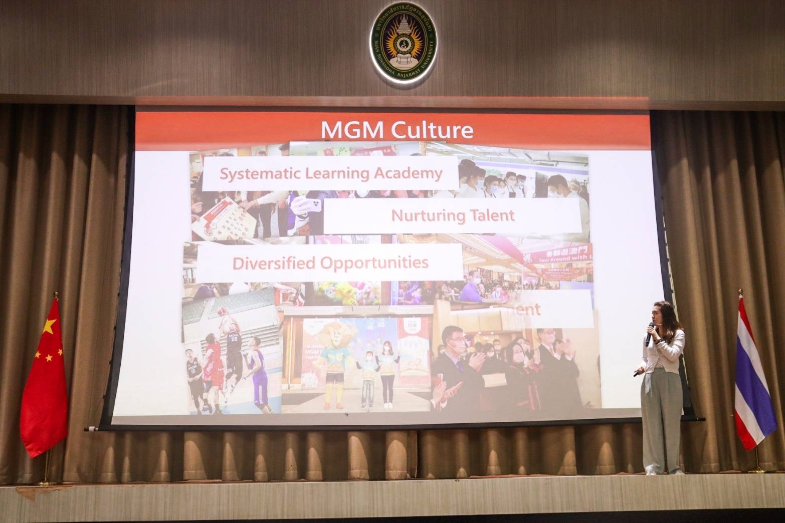 เมื่อวันที่ ๒๙ กุมภาพันธ์ ๒๕๖๗ - ฝ่ายวิเทศสัมพันธ์ และกองพัฒนานักศึกษา มหาวิทยาลัยราชภัฐสวนสุนันทา ร่วมกับสำนักงานแรงงาน ณ เมืองฮ่องกง นำโดย คุณปาริชาติ ประไพนพ อัครราชทูตที่ปรึกษา (ฝ่ายแรงงาน) สำนักงานแรงงาน ณ เมืองฮ่องกง พร้อมด้วยบุคลากรจากบริษัท MGM Macau จัด “กิจกรรมแนะแนวการทำงานและการฝึกงาน ณ เขตบริหารพิเศษมาเก๊า สำหรับนักศึกษาที่ต้องการหาประสบการณ์ การทำงานหรือฝึกงานที่ โรงแรมในมาเก๊า” โดยได้รับเกียรติจาก ดร.ธุวธิดา สุวรรณรัตน์ ผู้ช่วยอธิการบดีฝ่ายกิจการนักศึกษา เป็นประธานกล่าวเปิดงาน ณ หอประชุมสุนันทานุสรณ์ ซึ่งนักศึกษาให้ความสนใจเข้ารับการสัมภาษณ์เบื้องต้น นอกจากนี้ คุณปาริชาติ ประไพนพ ได้เข้าเยี่ยมชมพิพิธภัณฑ์อาคารสายสุทธานภดล โดยมีเจ้าหน้าที่ภัณฑารักษ์ เป็นผู้นำชม