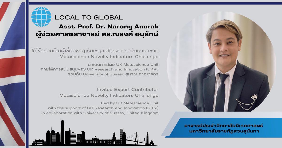 ผู้ช่วยศาสตราจารย์ ดร.ณรงค์ อนุรักษ์ อาจารย์ประจำวิทยาลัยนิเทศศาสตร์ มหาวิทยาลัยราชภัฏสวนสุนันทา ได้รับเกียรติให้เข้าร่วมเป็น Invited Expert Contributor ในโครงการวิจัยนานาชาติ Metascience Novelty Indicators Challenge ซึ่งดำเนินการโดย UK Metascience Unit ภายใต้การสนับสนุนของ UK Research and Innovation (UKRI) ร่วมกับ University of Sussex สหราชอาณาจักร โดยมี Science Policy Research Unit (SPRU) และ RAND Europe เป็นหน่วยงานหลักในการดำเนินงานวิจัย